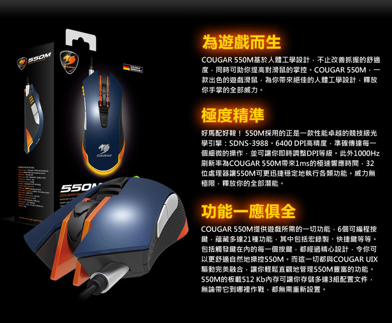 【COUGAR 美洲獅】 550M 競技級遊戲滑鼠