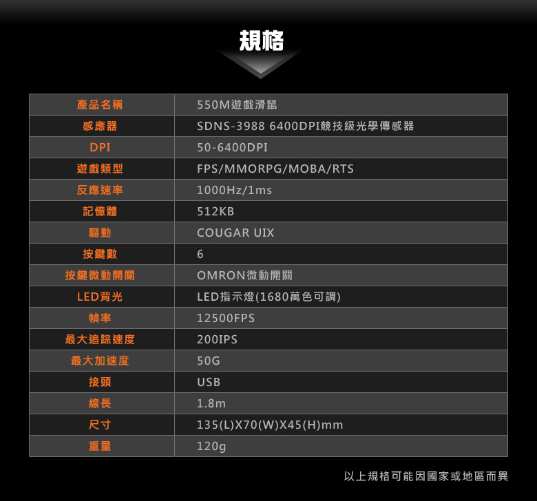 • COUGAR 美洲獅 550M 競技級遊戲滑鼠