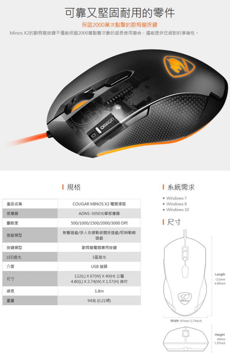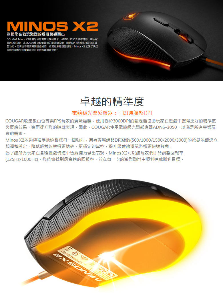 【COUGAR 美洲獅】MINOS X2 (黑色) 競技版 電競光學滑鼠