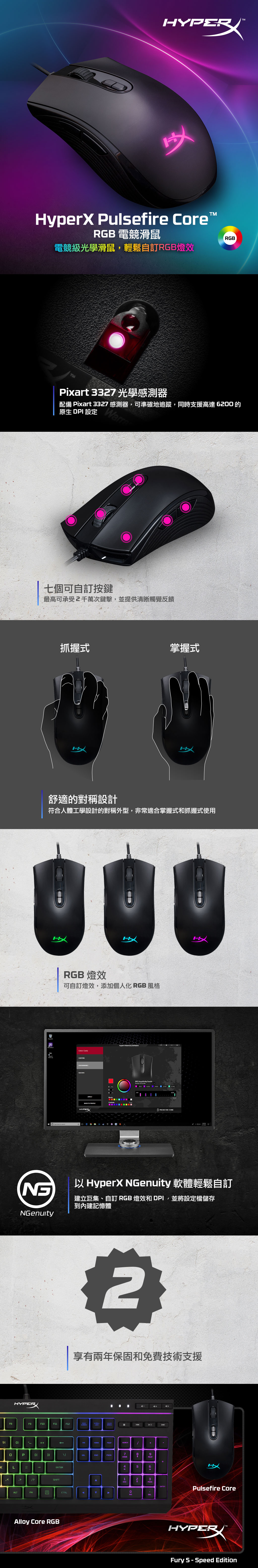 • 金士頓 HyperX Pulsefire Core 電競滑鼠