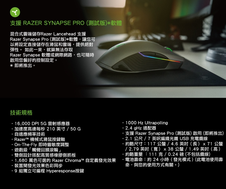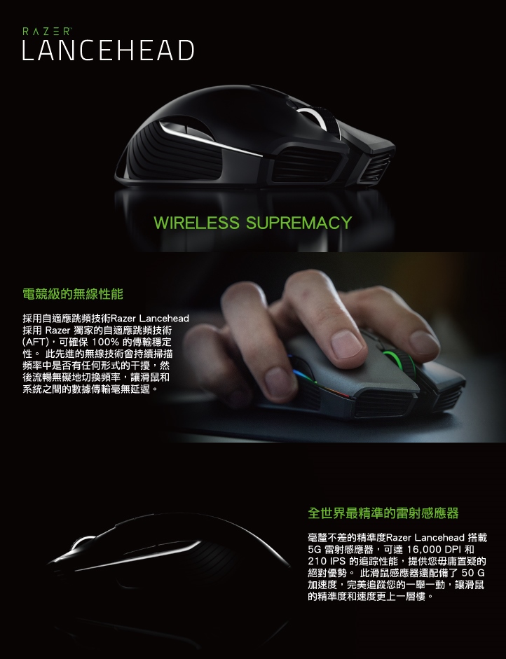 Razer Lancehead 銳蝮蛇滑鼠/無線有線雙用/5G雷射/16000DPI/左手可用/RGB