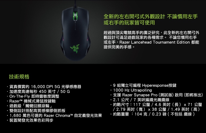 • Razer Lancehead TE 銳蝮蛇競技版滑鼠