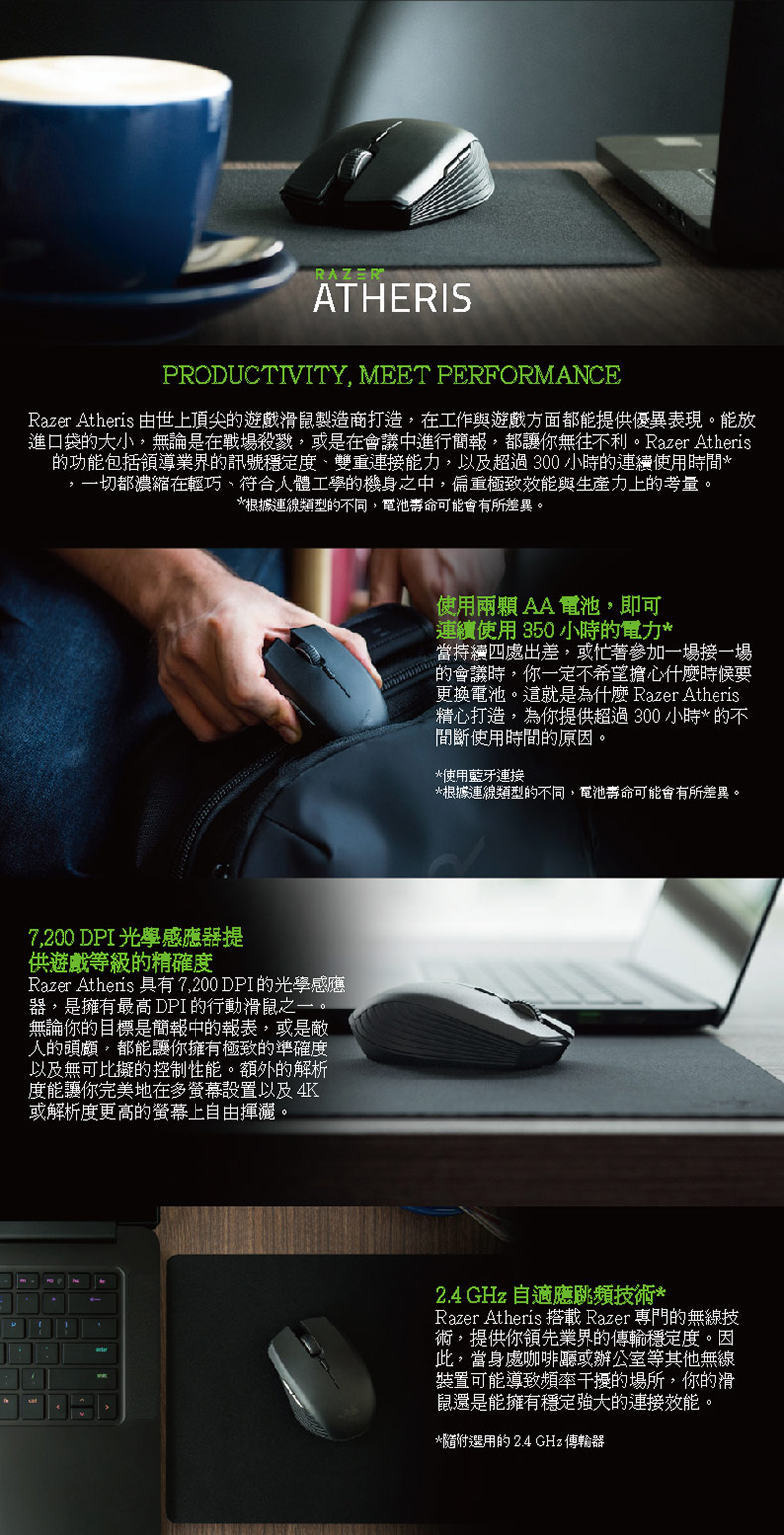 Razer Atheris 雙模藍芽光學滑鼠/藍牙-無線/7200dpi