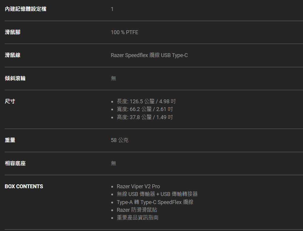 • Razer Viper V2 Pro 無線超輕量電競滑鼠(白)