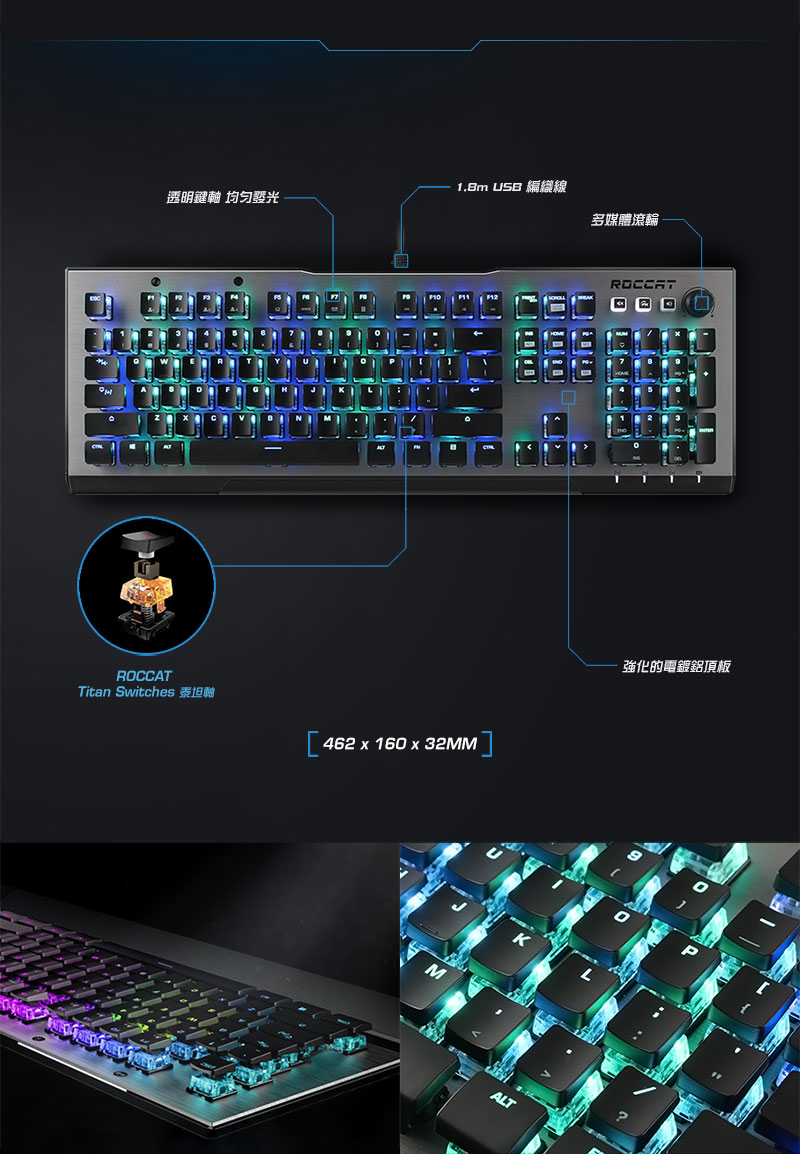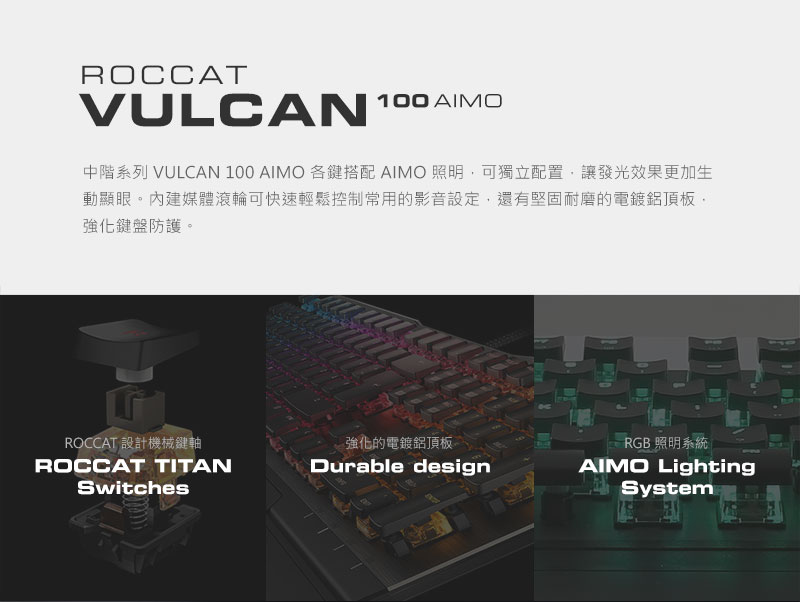 ROCCAT Vulcan 100 AIMO 機械式鍵盤/有線/茶軸/中文/RGB