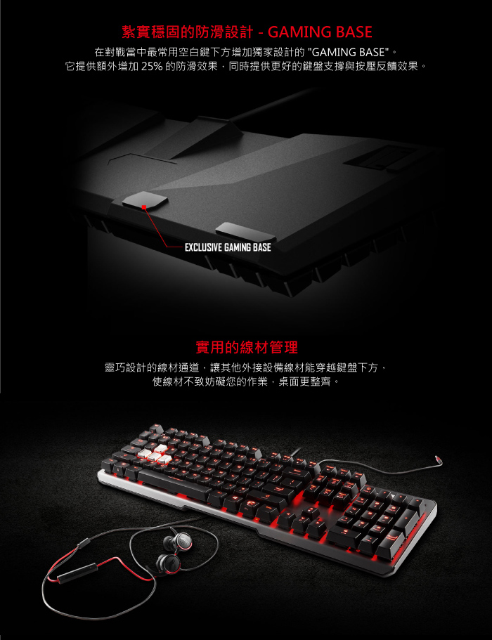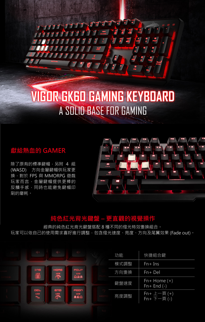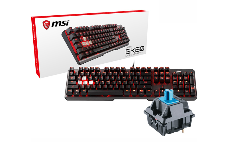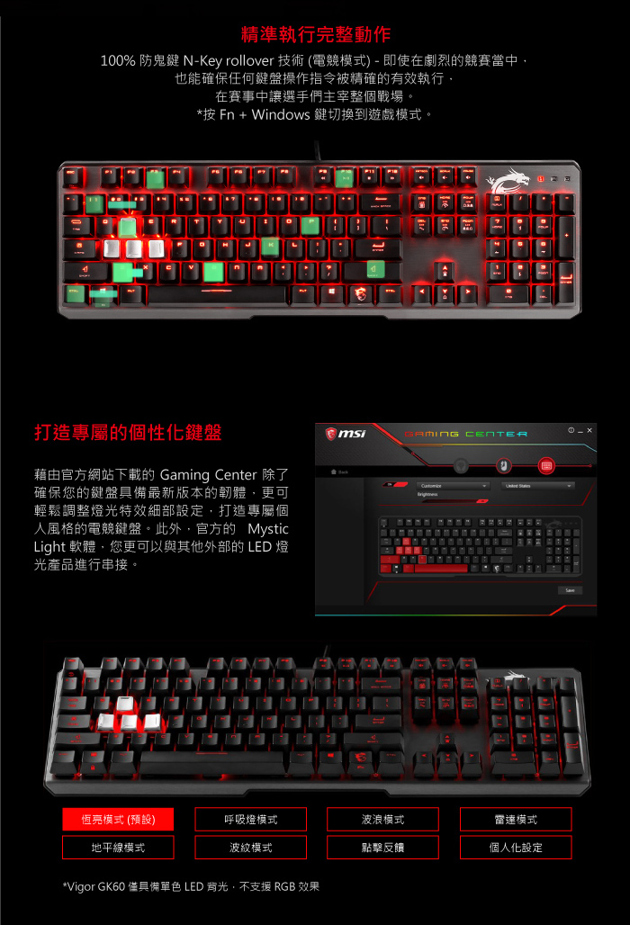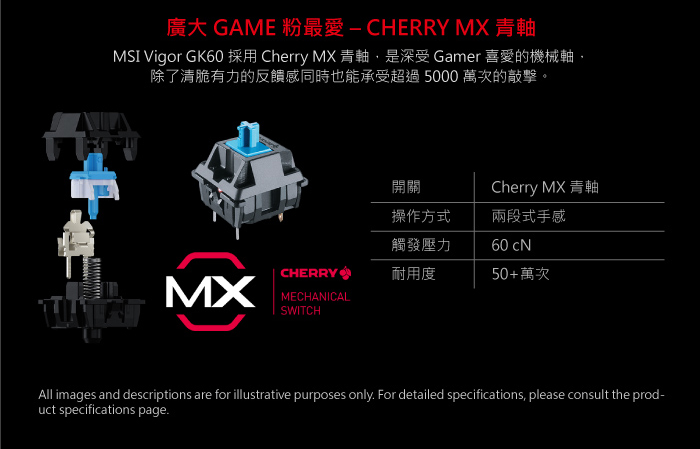 微星 Vigor Gk60 機械式鍵盤/有線/青軸/金屬底板/懸浮/櫻桃/紅光/中文