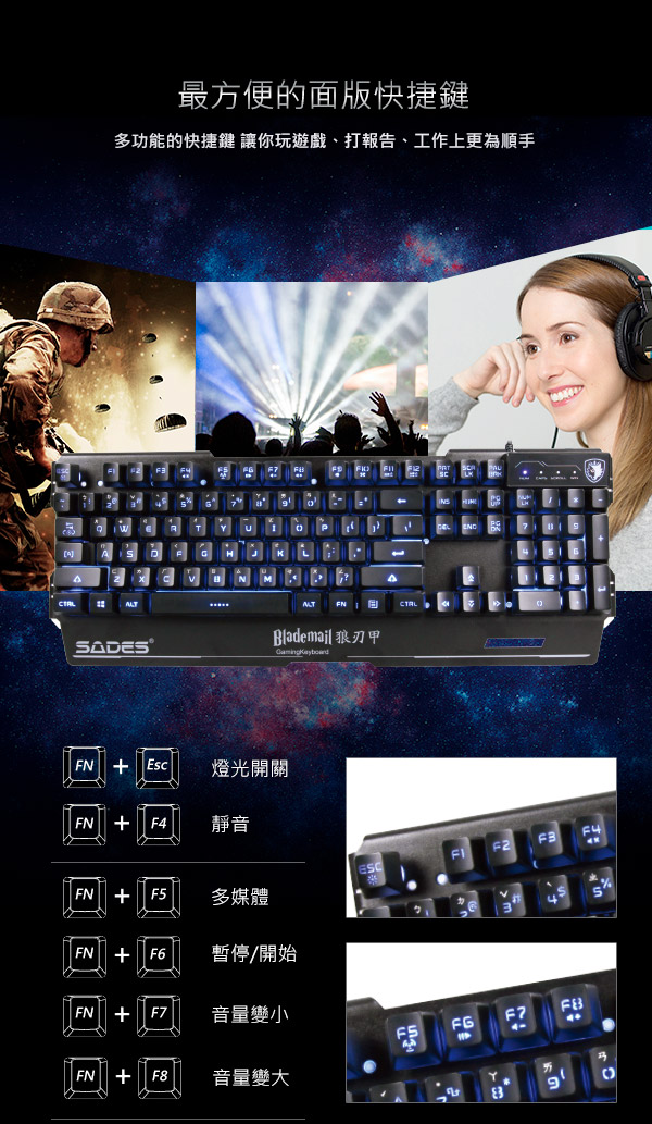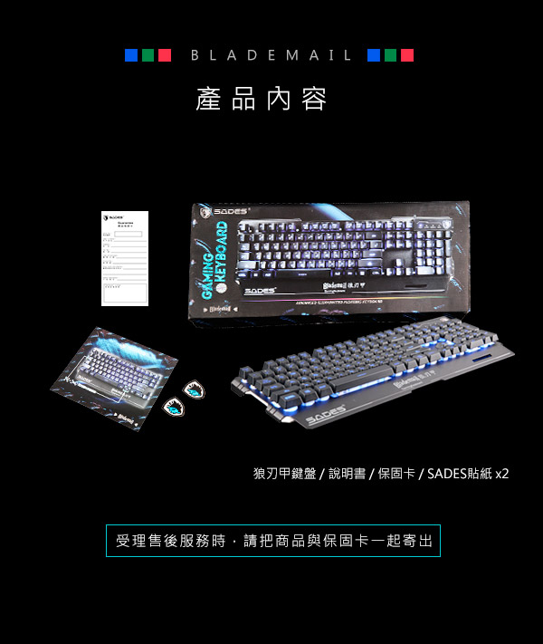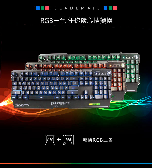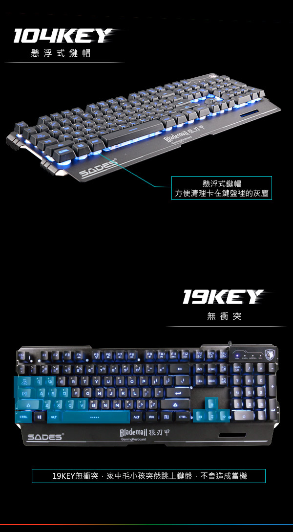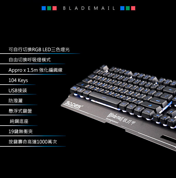 • SADES BLADEMAIL 狼刃甲 RGB 104KEY 鍵盤 中文注音版