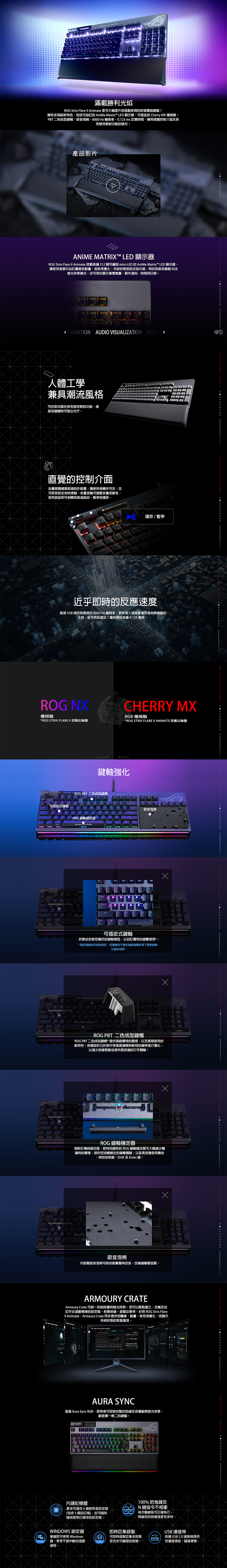 華碩 Flare II Animate PBT 機械電競鍵盤/有線/PBT/紅軸/可換軸/中文/櫻桃/Rgb