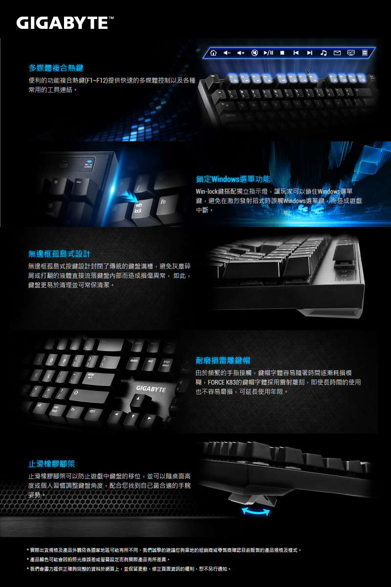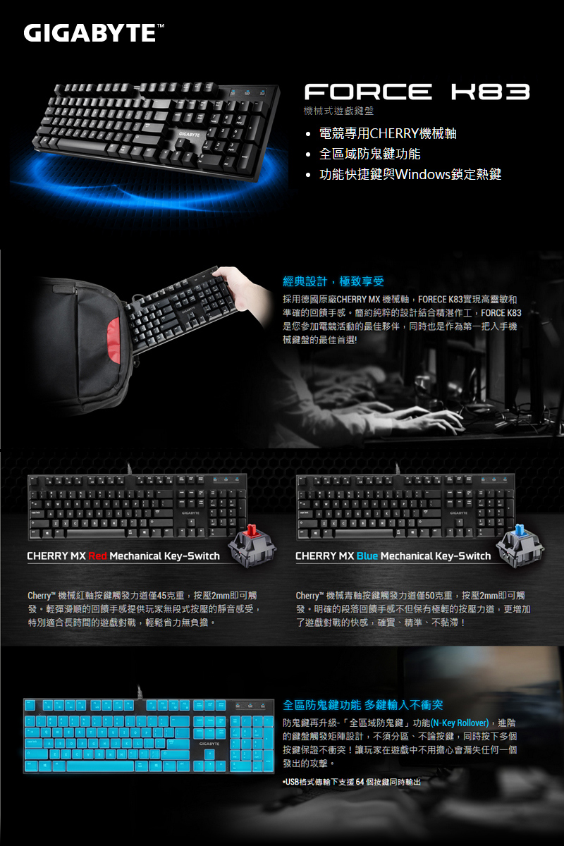 • 技嘉 FORCE K83機械式遊戲鍵盤-青軸