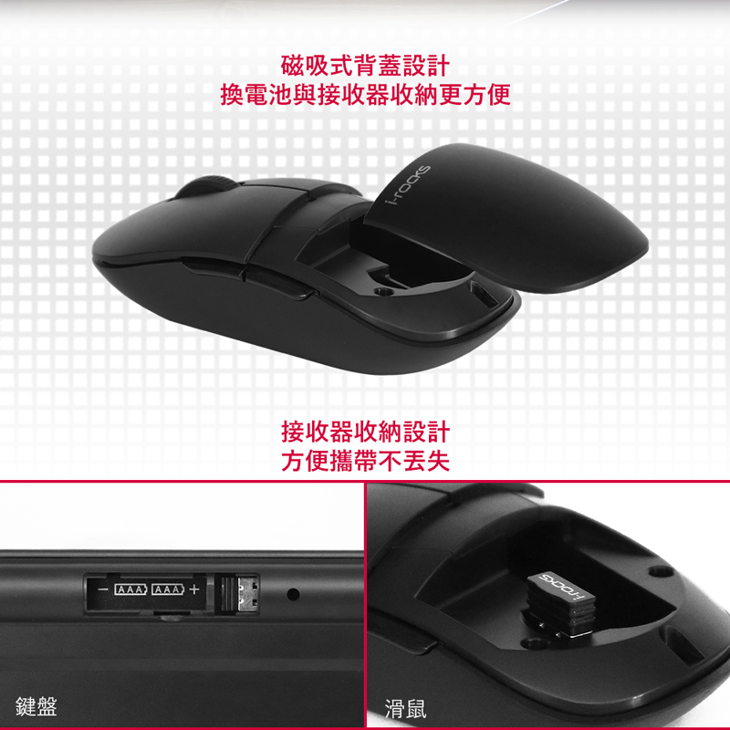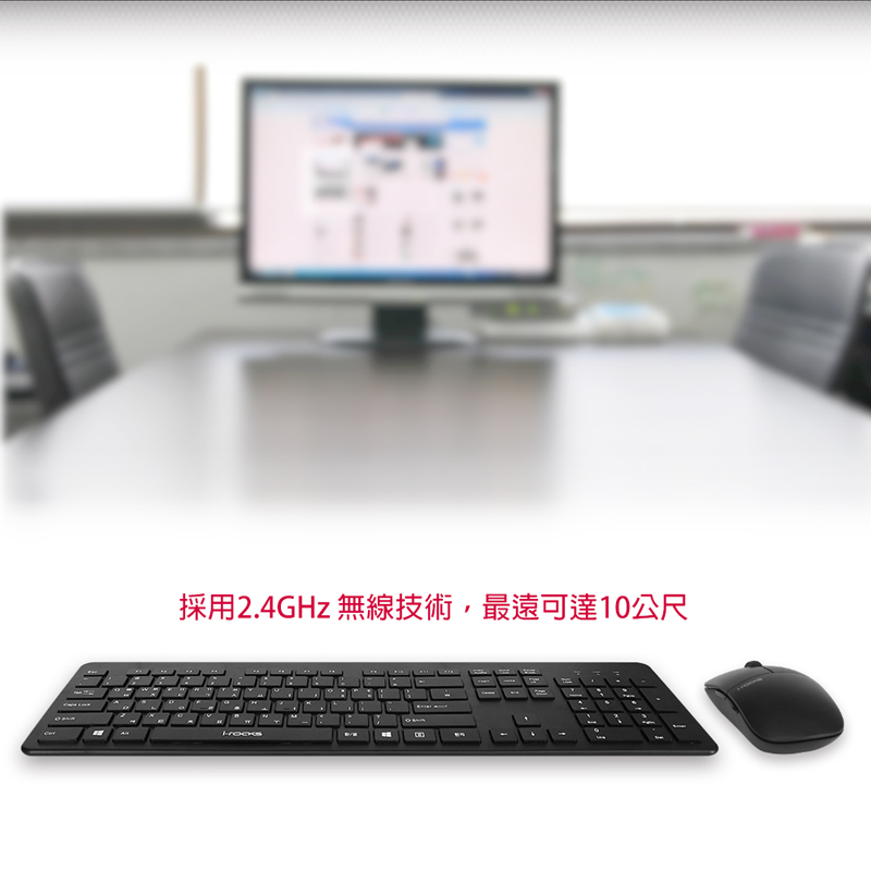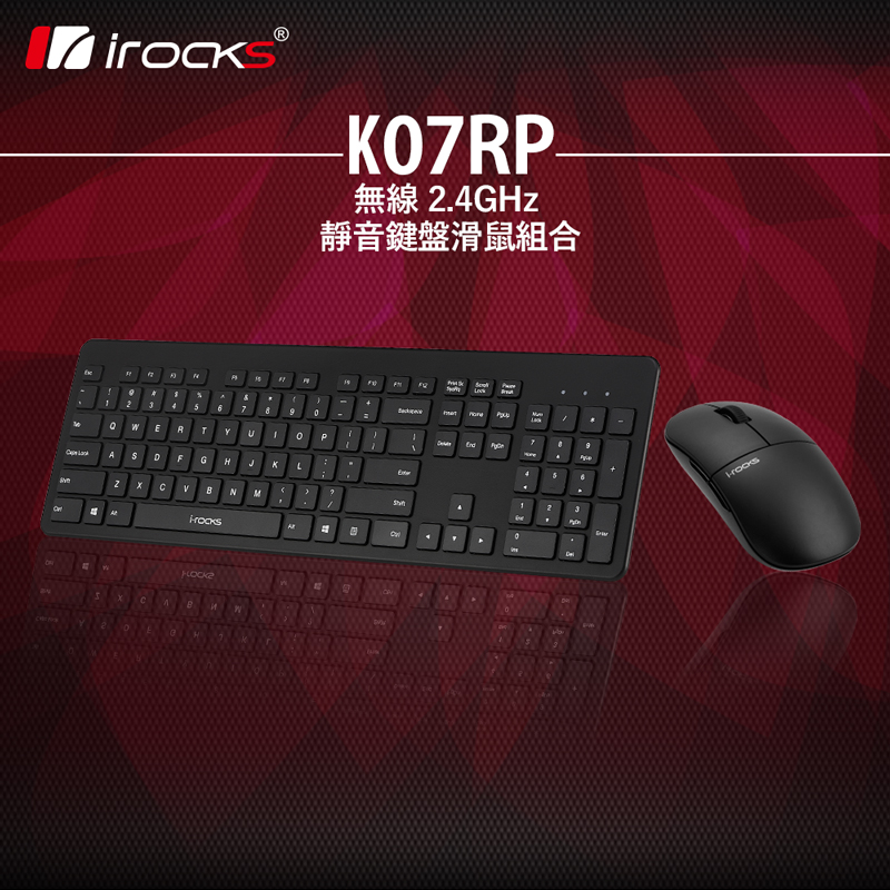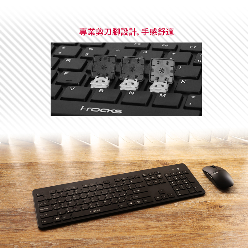 I-ROCKS K07RP 無線靜音鍵鼠組/2.4GHz無線技術/剪刀腳平衡結構設計/流線型造型設計