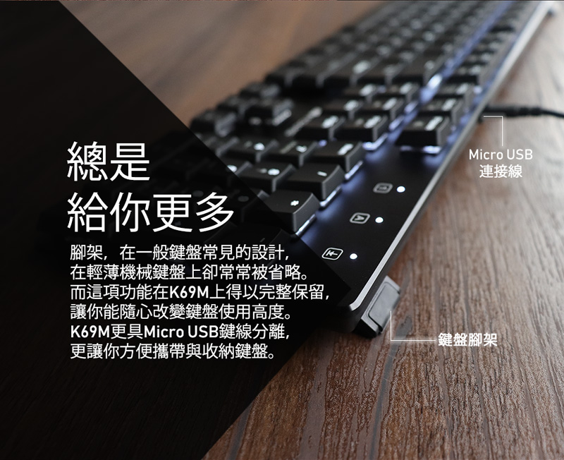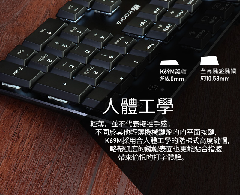 • I-ROCKS K69M 超薄金屬機械式鍵盤/茶軸