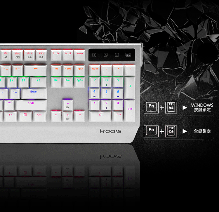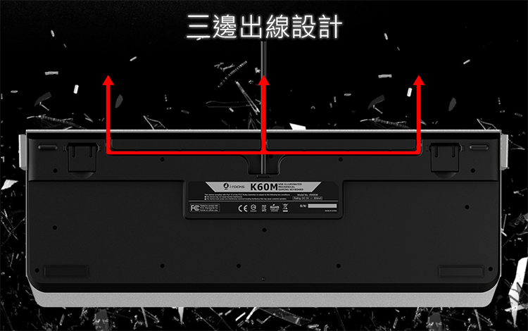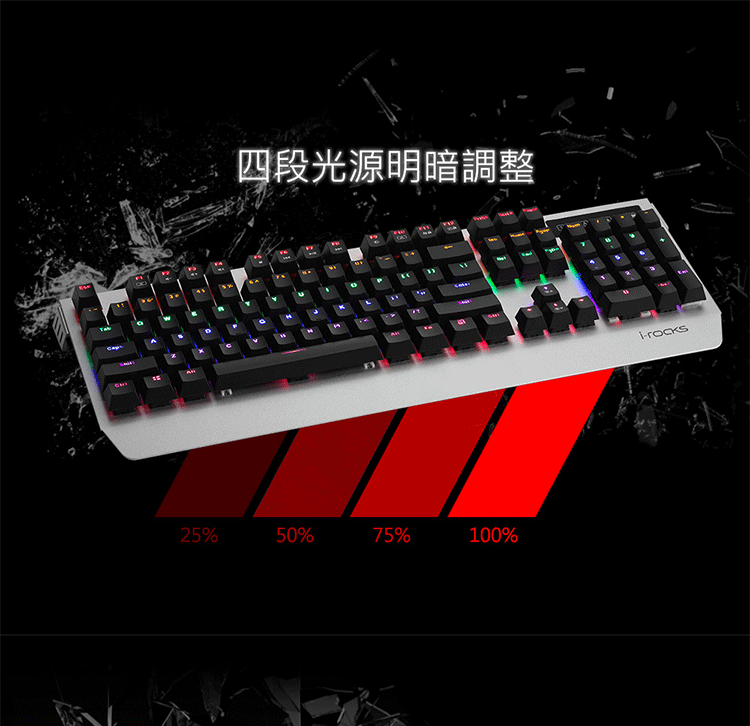 產品型號: IRK60M產品名稱 : 背光機械鍵盤介 面 : USB ( Full Speed )按鍵型式: 機械開關背光方式 : 單色LED多彩分區按鍵數 : 104 鍵 (依語文別而定)按鍵行程 : 4.0 mm全區無衝突N-Key rollover背光模式 : > 12種背光效果> 背光開關及背光明亮度調整 多媒體功能鍵消耗電流 : 最大 350 mA額定電壓 : DC 5V線 長 : 180公分商品尺寸:458 (L)*165 (W)*39.5 (H) mm商品重量 : 約 1.4 公斤包裝內容:
