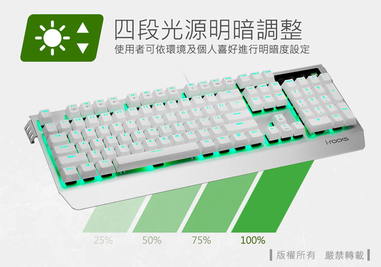 • i-rocks 艾芮克 K60M (銀白綠光)(青軸)(中文版)背光防鬼鍵 懸浮