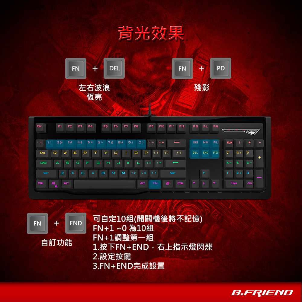 • B.FRIEND MK1ST 機械式鍵盤/有線/青軸/中文/6色背光