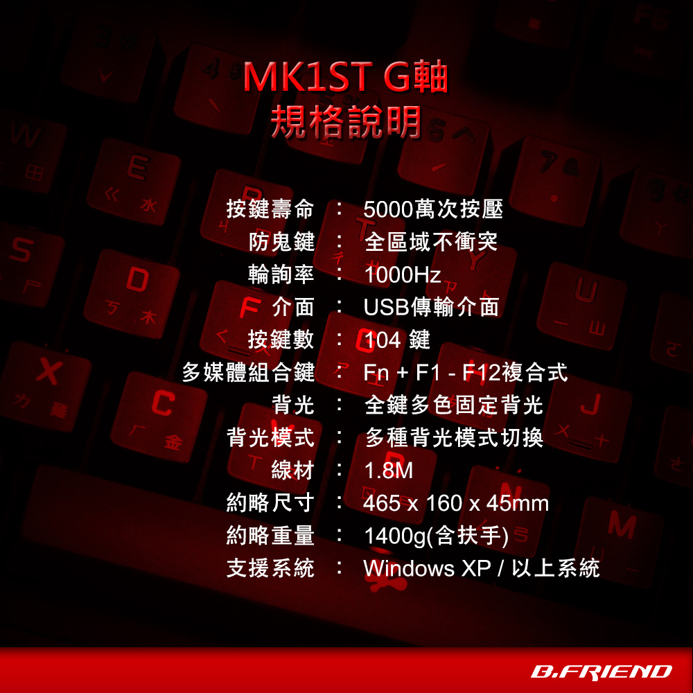 B.FRIEND MK1ST 機械式鍵盤/有線/青軸/中文/6色背光