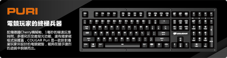 【COUGAR 美洲獅】 PURI 白光專業機械式電競鍵盤【紅軸】