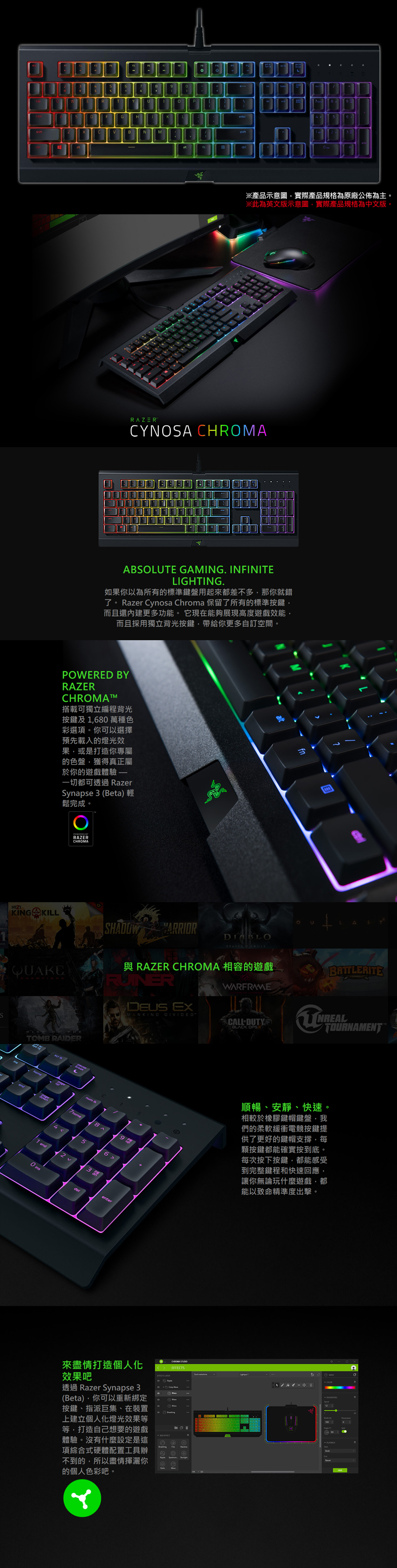 • Razer Cynosa Chroma 薩諾狼蛛幻彩版