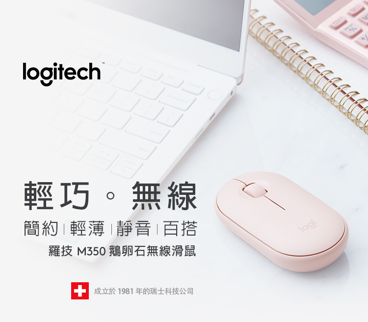 Logitech 羅技|M350 鵝卵石無線滑鼠-珍珠白