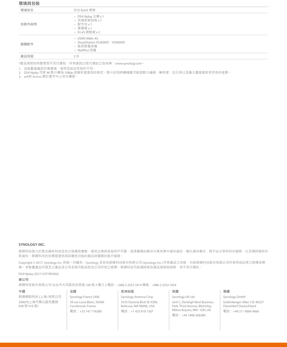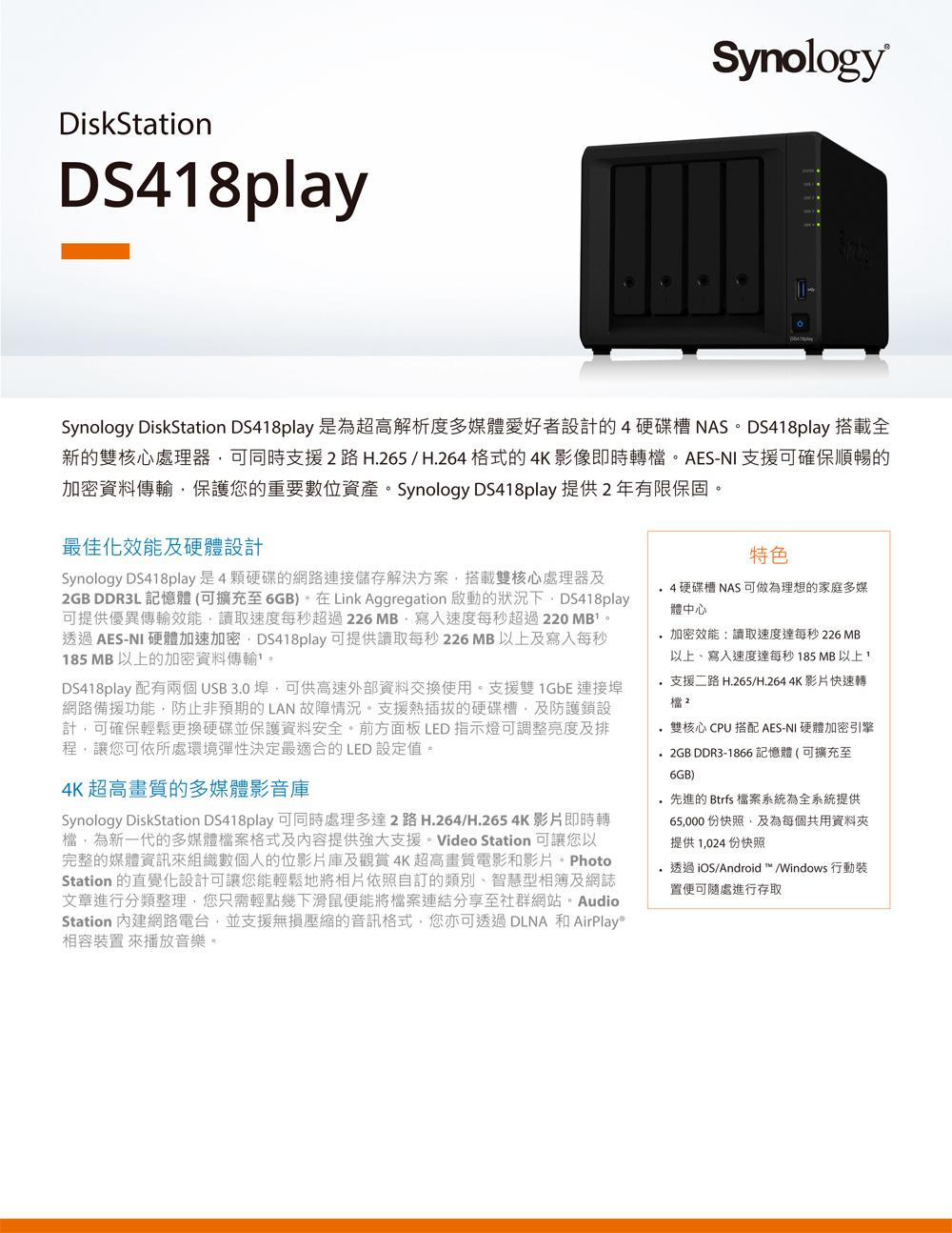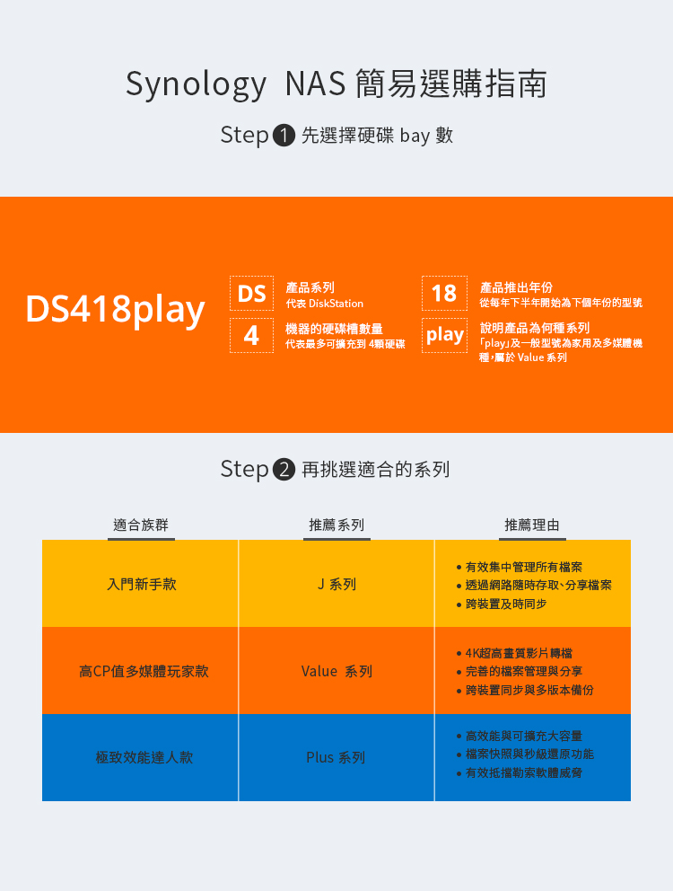 Synology DS418PLAY【4Bay】Intel Celeron J3355雙核心/2G/G-LAN