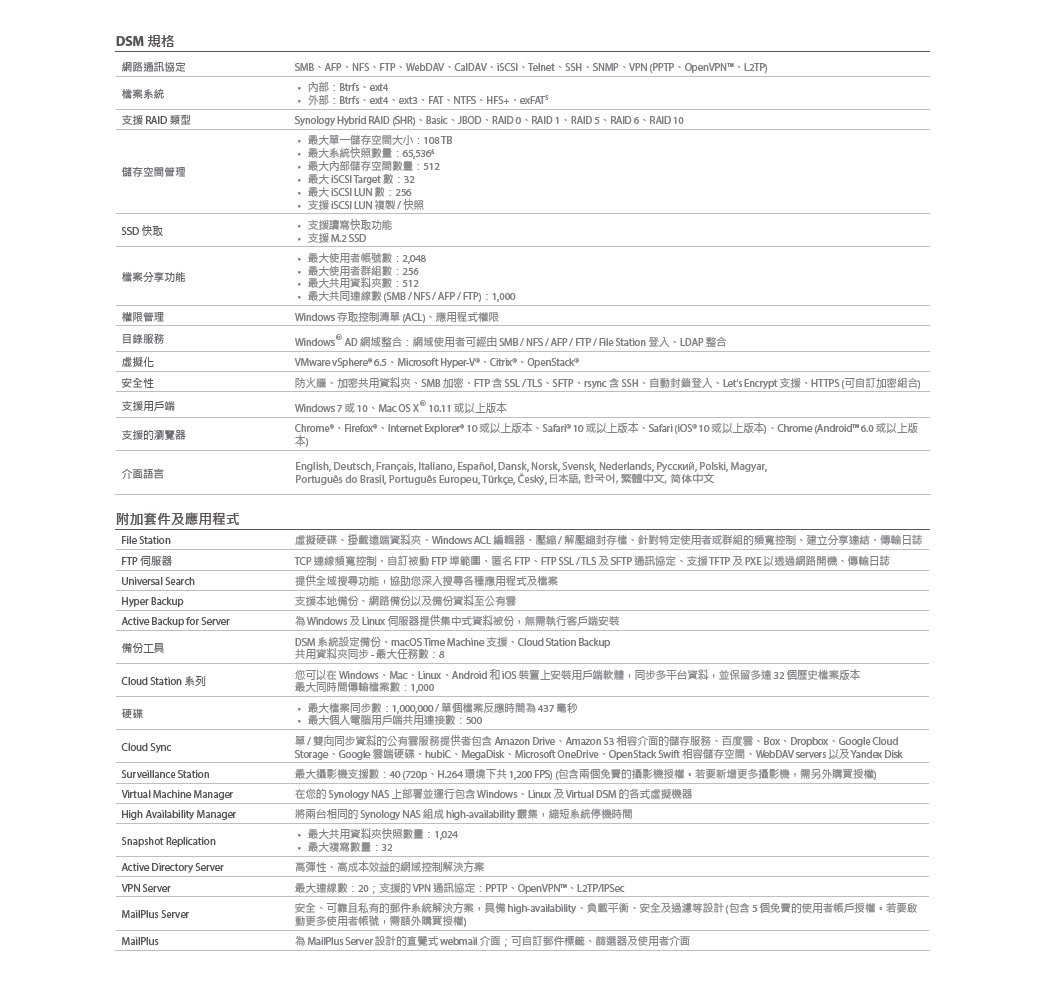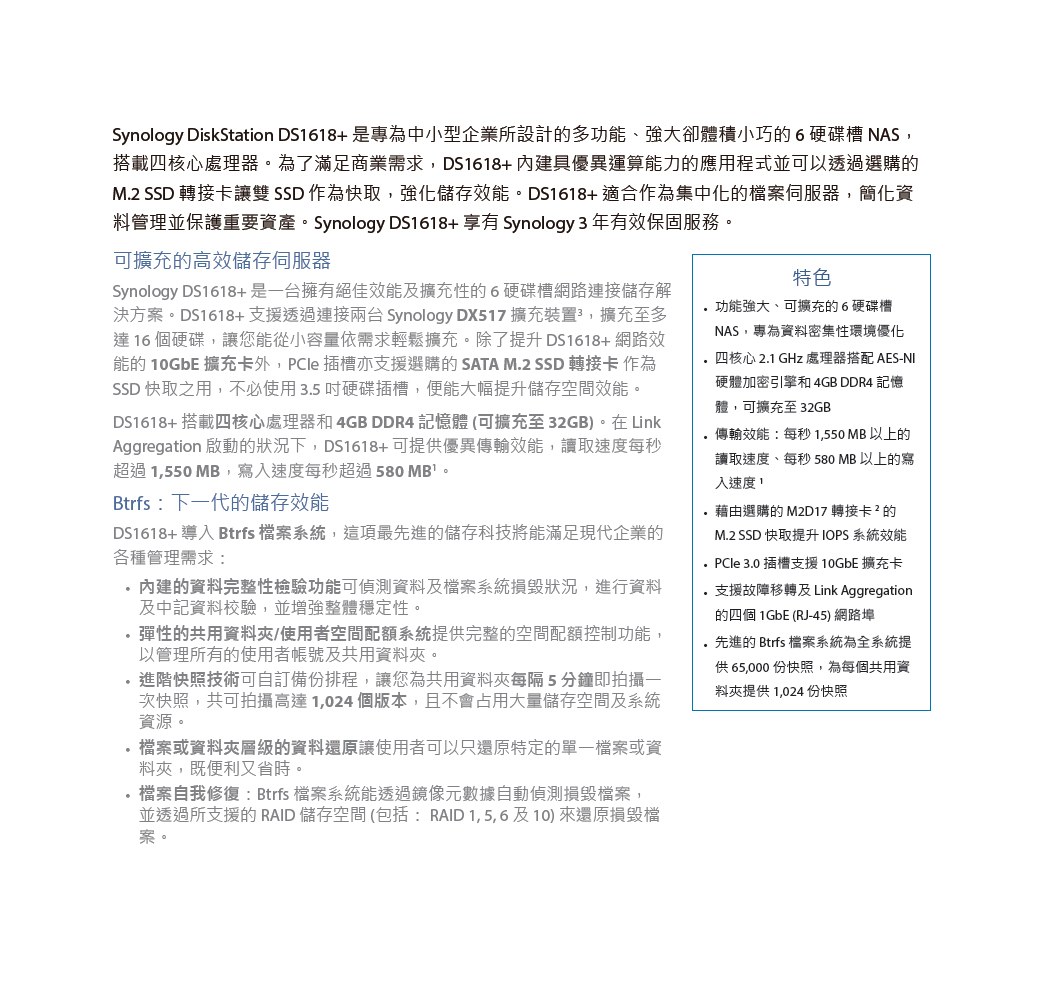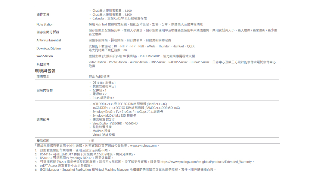 • Synology DS1618+(4G)【6Bay】四核A2.1GHz/D4/G