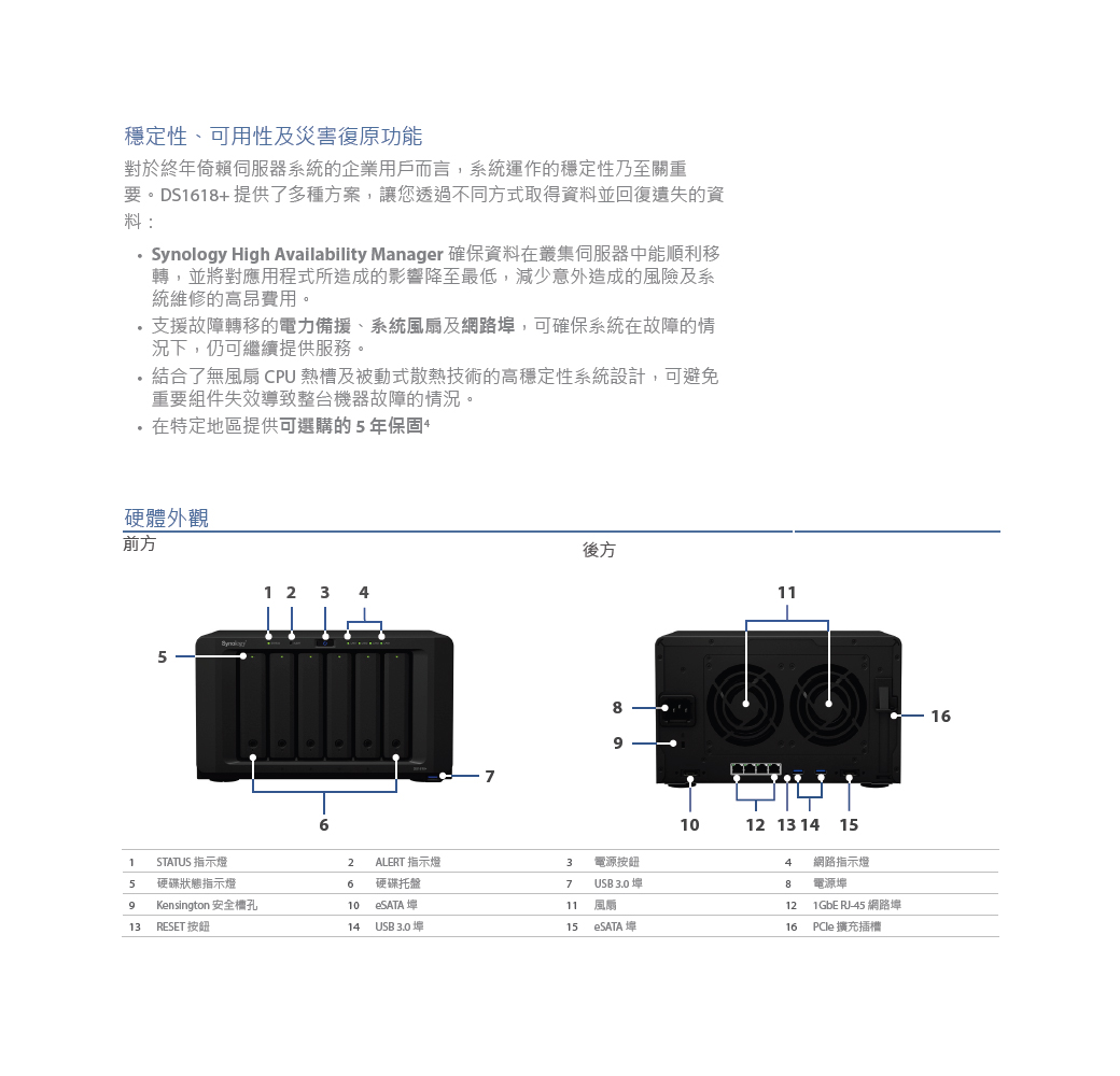 Synology DS1618(4G)【6Bay】四核A2.1GHz/D4/G-LAN*4/U3*3/eSATA