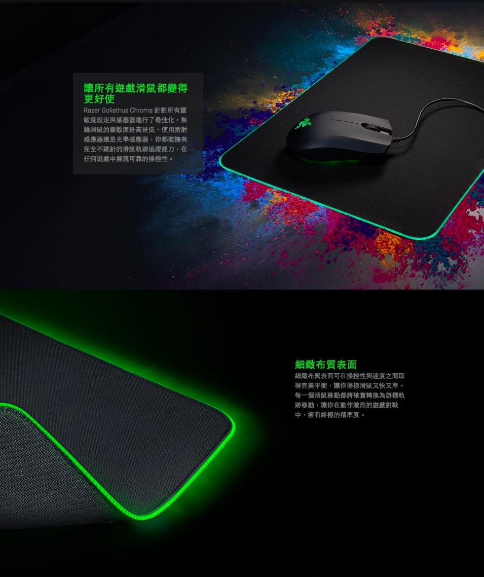 Razer Goliathus Chroma 重裝甲蟲 幻彩版鼠墊(小)/RGB/防滑膠底/USB供電/255x355x3mm