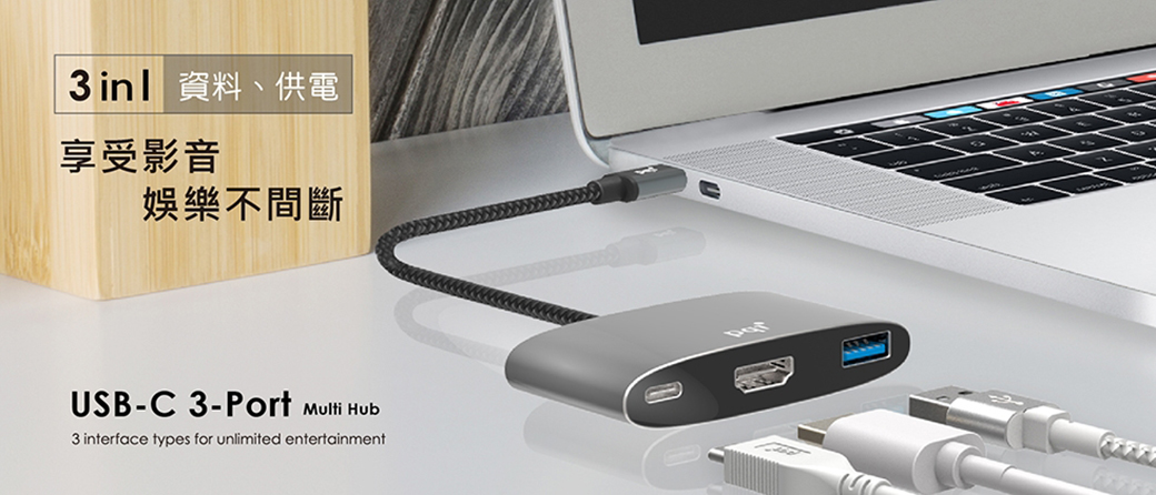 介面 輸入介面:USB 3.1 Type-C ™ 輸出介面:Type C™x1 (PD charger only)、Type A USB3.1 Gen 1 x1、HDMI x1 產品尺寸 75mm x 37mm x 14mm 實際重量 48g ± 5g 產品保固 一年 傳輸速率 USB3.1 最大 5Gbps、輸出:最大 4Kx2K @ 30Hz