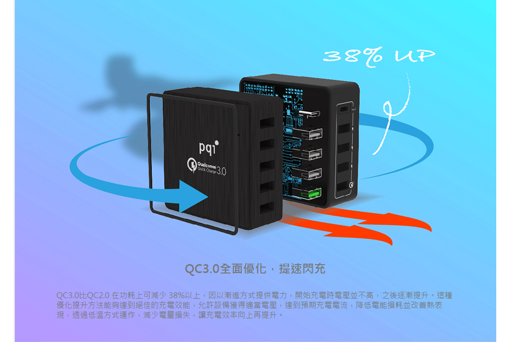 • PQI Smart i-Charge Station 40W QC3.0快速充電