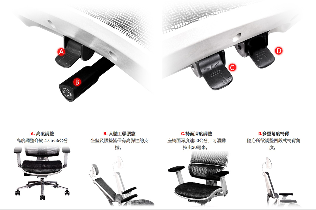 Cyberchair E500(雪白版)人體工學網椅/鋁合金骨架/4D 扶手/鋁合金五星腳/90°~117°