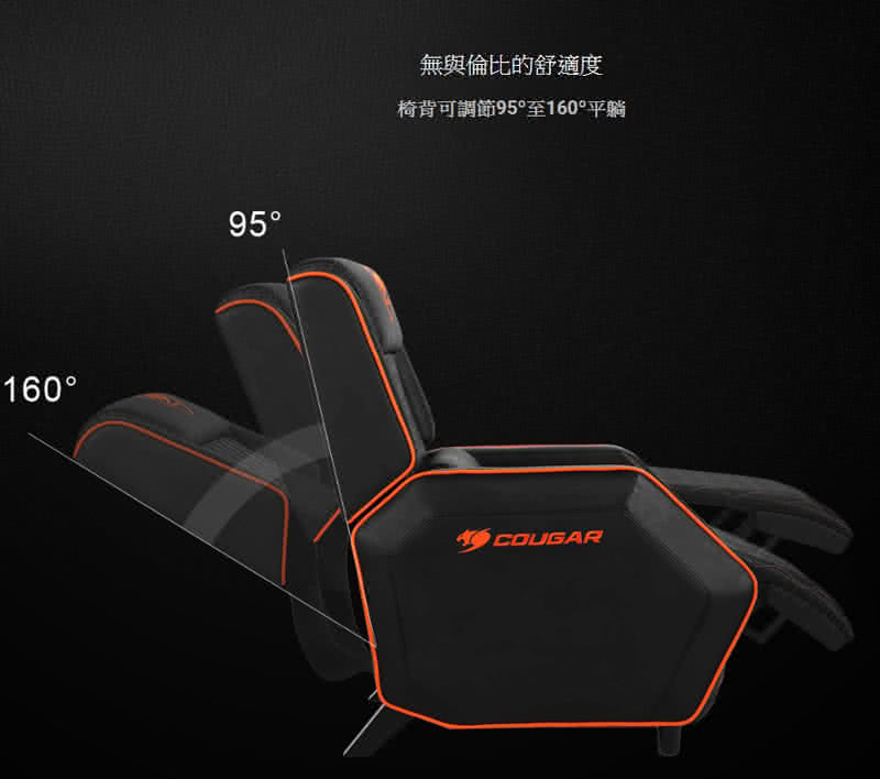 • 【COUGAR 美洲獅】RANGER 電競沙發椅/椅背可調節95度至160度平躺/PVC皮革/黑橘