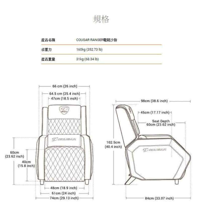 • 【COUGAR 美洲獅】RANGER 電競沙發椅