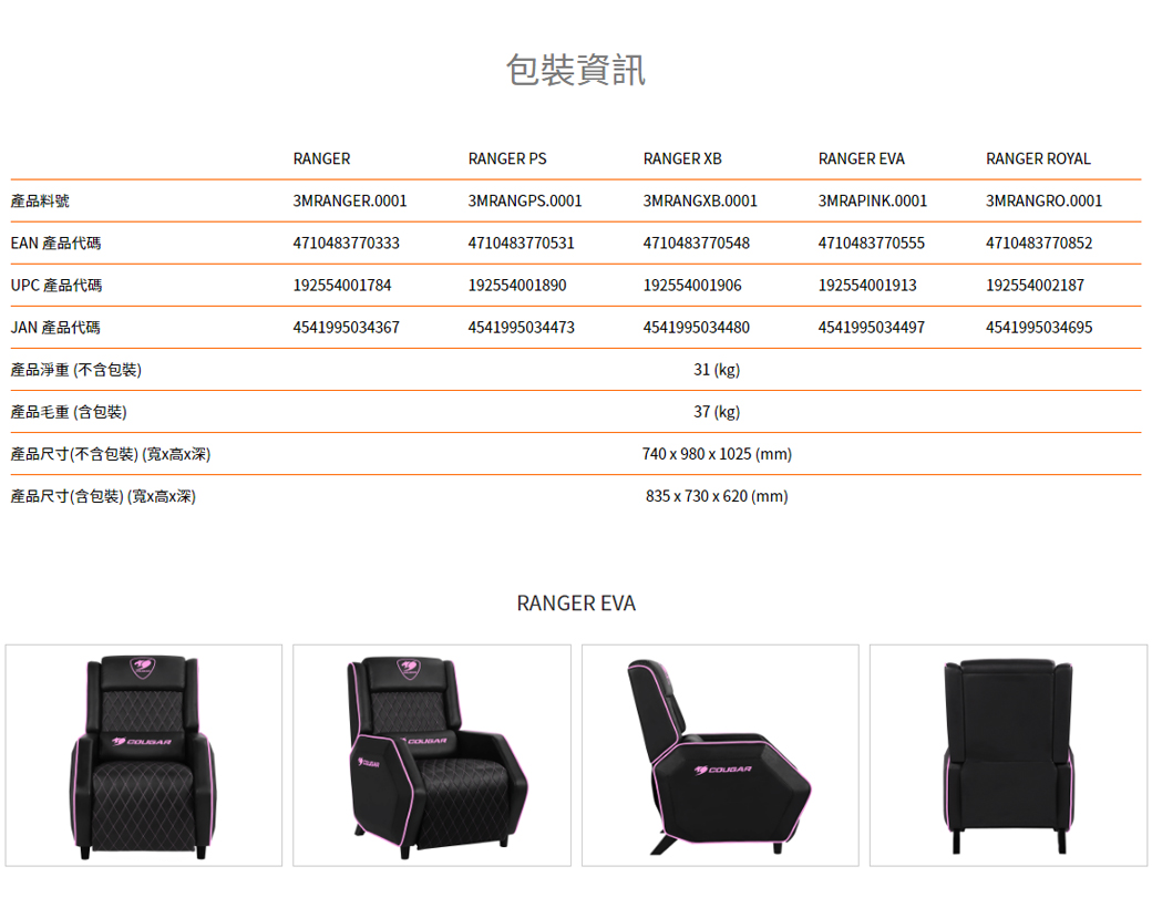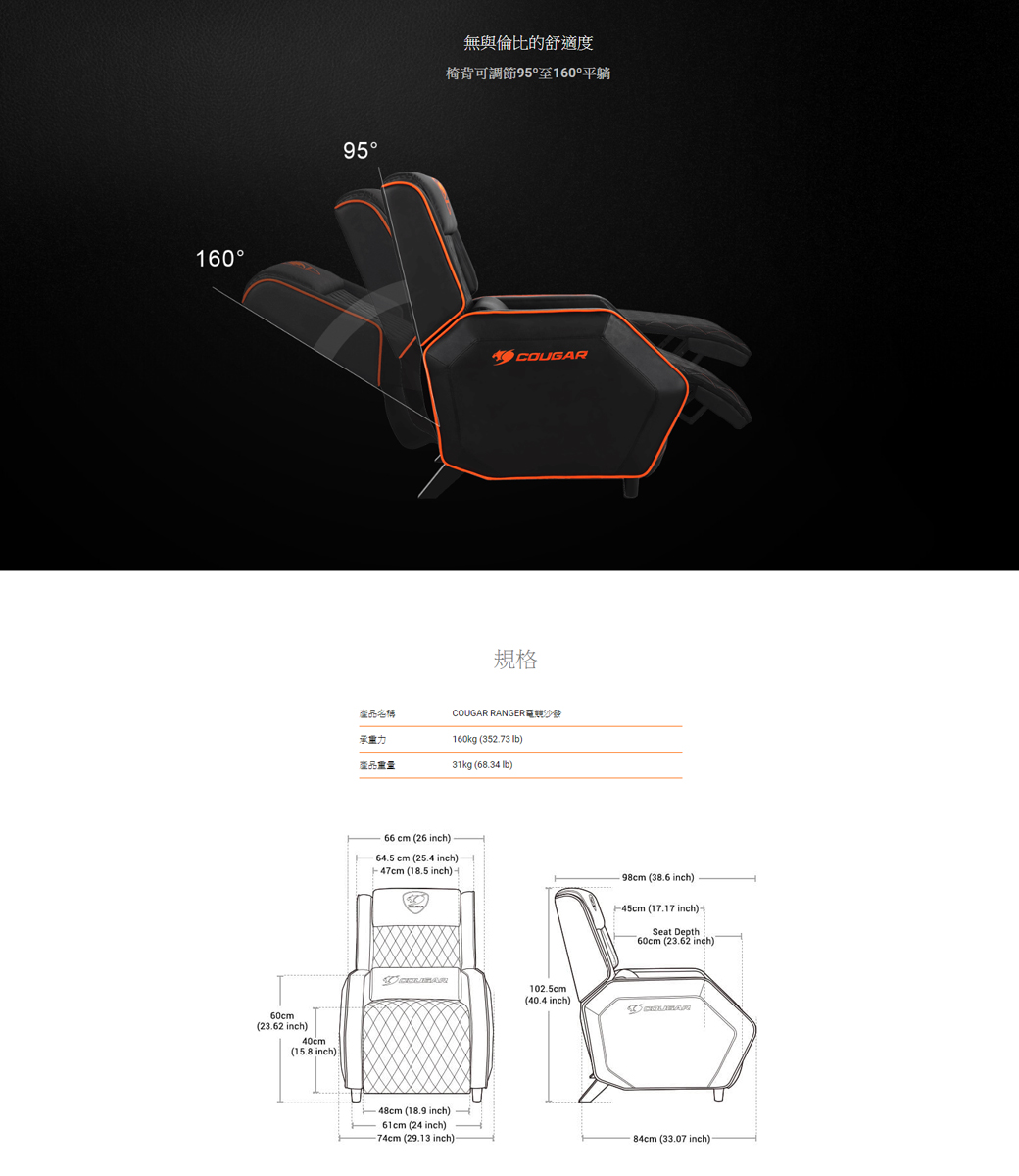 • 【COUGAR 美洲獅】 RANGER 電競沙發椅