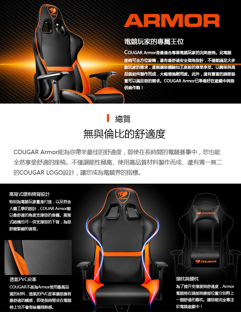 • 【COUGAR 美洲獅】 ARMOR 是最適合專業電競玩家的完美座椅