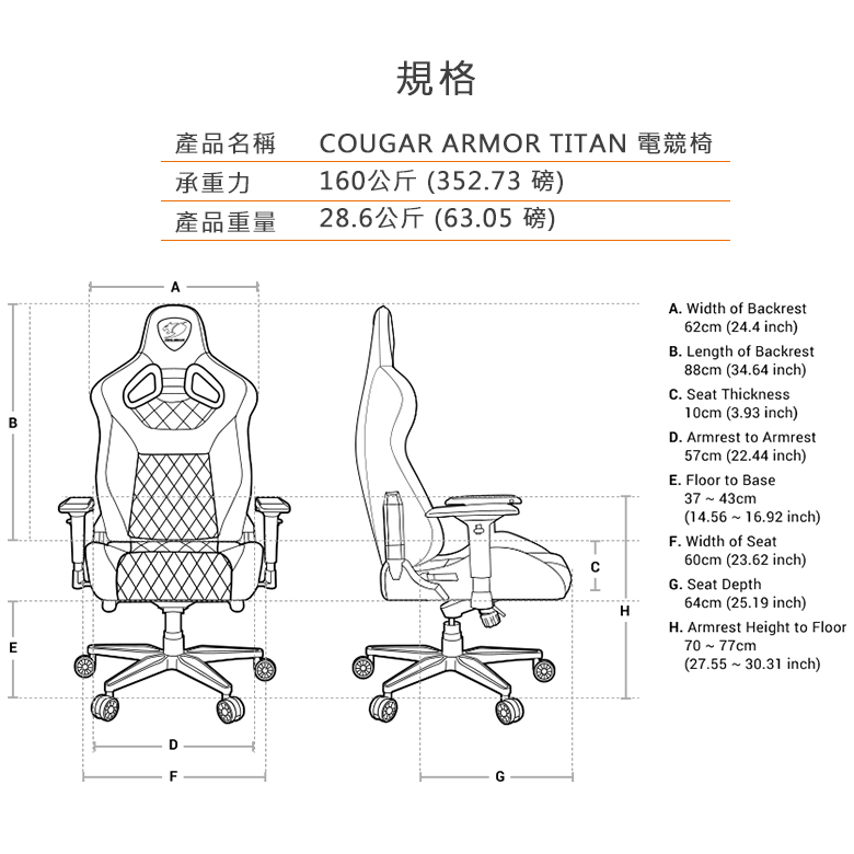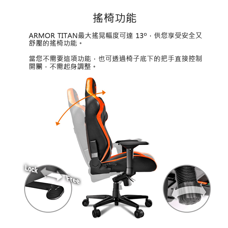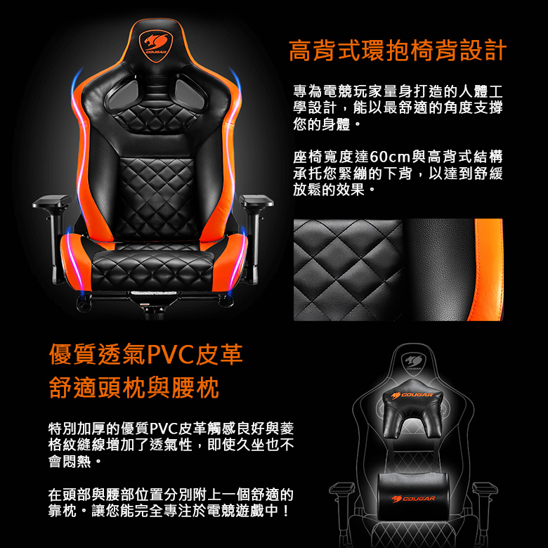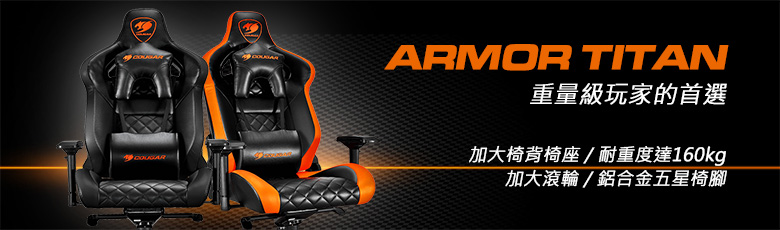 • 【COUGAR 美洲獅】 ARMOR TITAN 黑/黑橘色 豪華電競椅