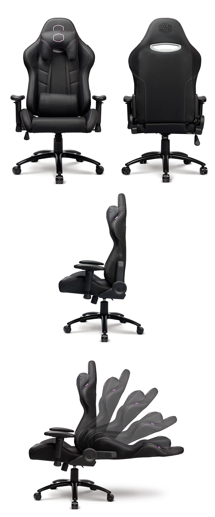 Cooler Master Caliber R2 電競椅(純黑)/PU材質/全鋁底座/180°/class 4氣壓棒