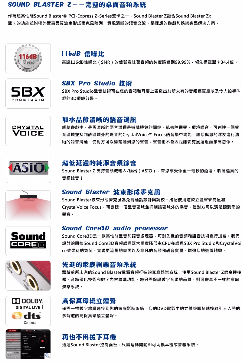 Creative SB Z/PCI-E/訊噪比:116db/5.1/光纖
