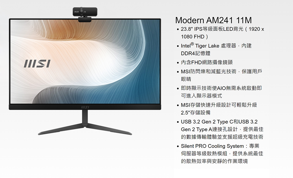 微星 Modern AM241 11M【688TW】23.8吋/Pentium 7505/4G/128SSD/
