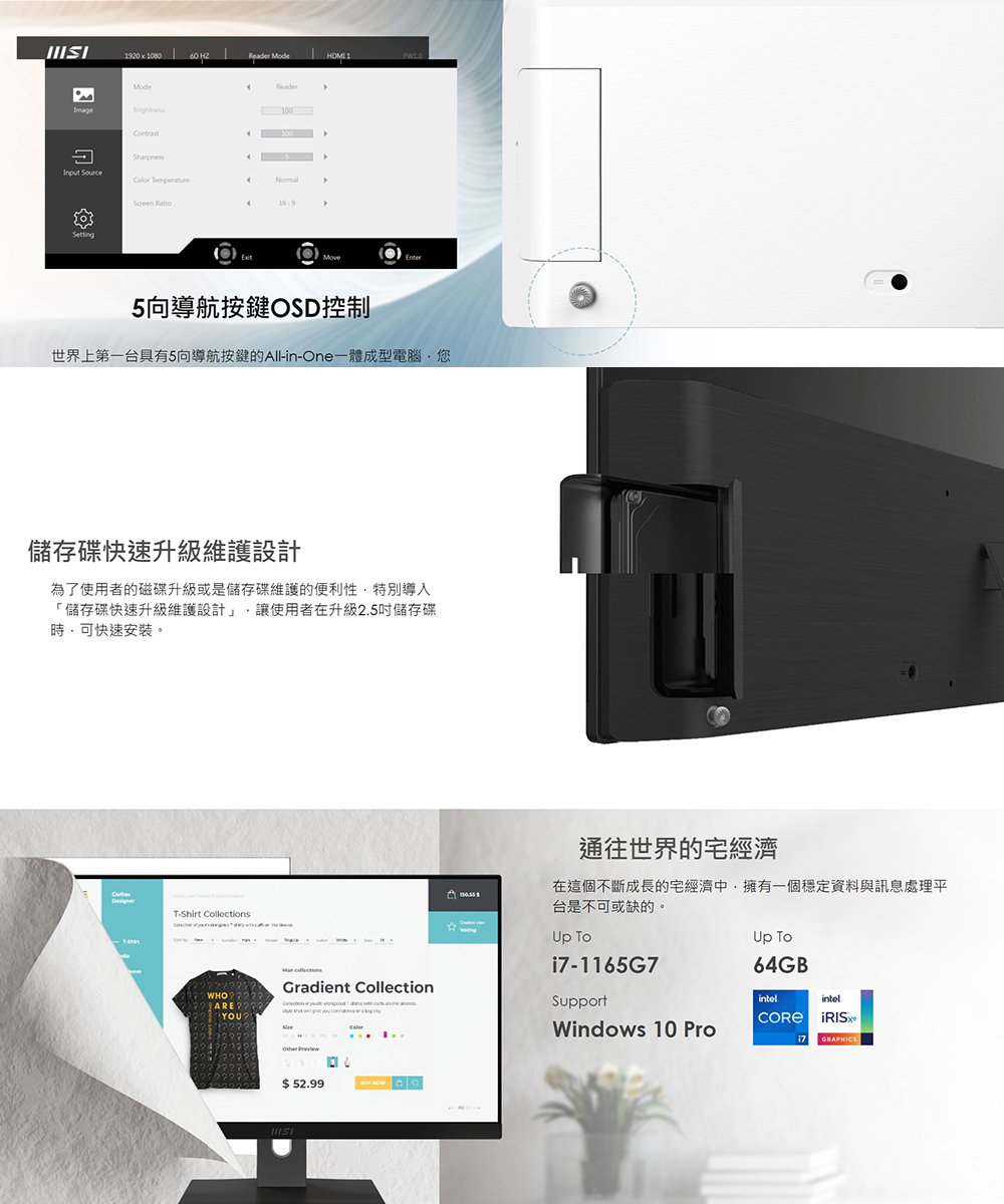微星 Modern AM241TP 11M【802TW】23.8吋/I5-1135G7/8G/1TB256SS