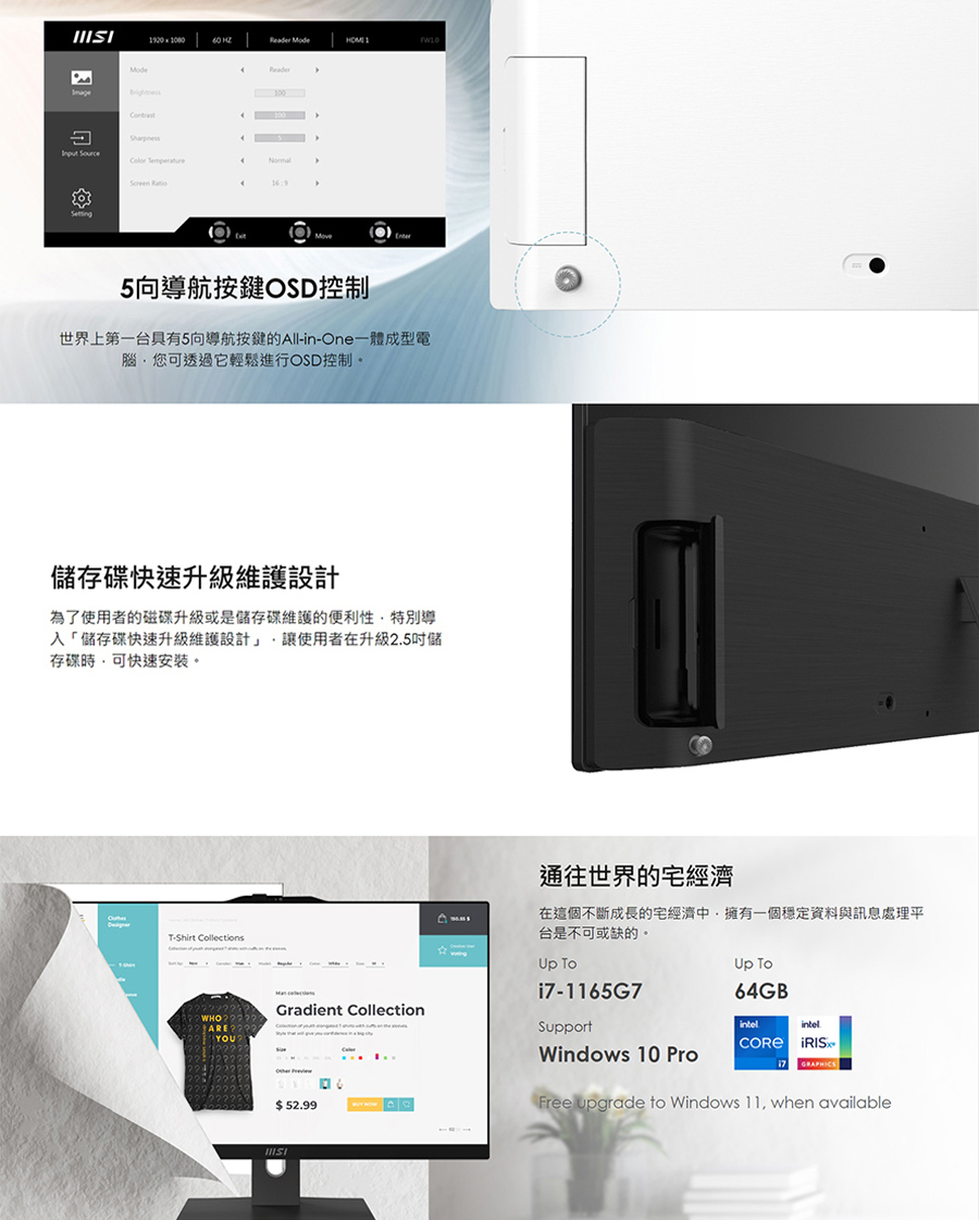微星 Modern AM242TP 11M【1264TW】23.8吋/I5-1135G7/8G/512G/WIN11/黑