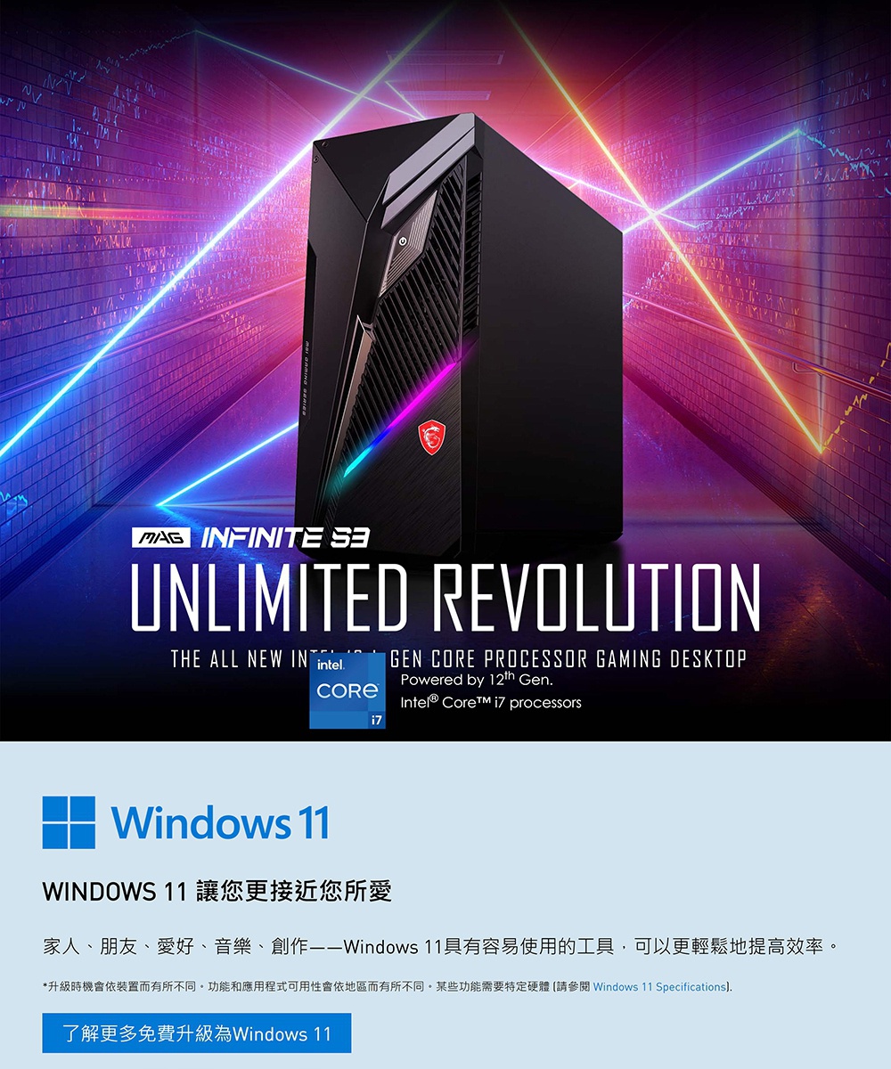 微星 MAG Infinite S3 12SC【445TW】i5-12400F/8G/512G SSD+1T/RTX 2060/W11