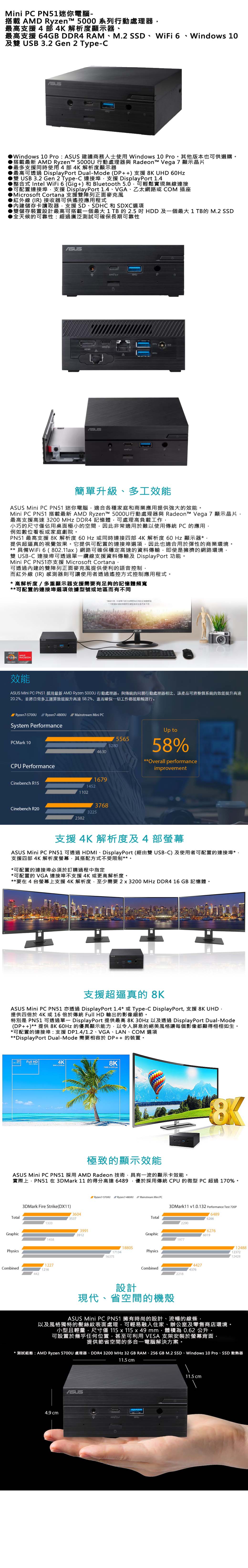 華碩 PN51-E1-57UUPKA(R7-5700U/8G/512G SSD/WIN11)