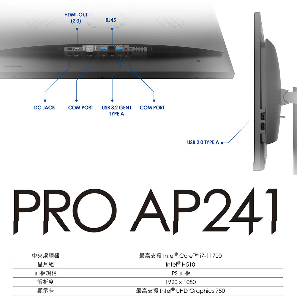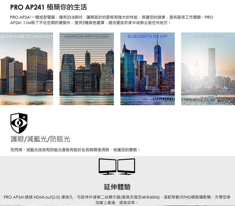 微星 PRO AP241 11M【077TW】23.8吋/I3-10105/8G/256GB SSD/W10/白