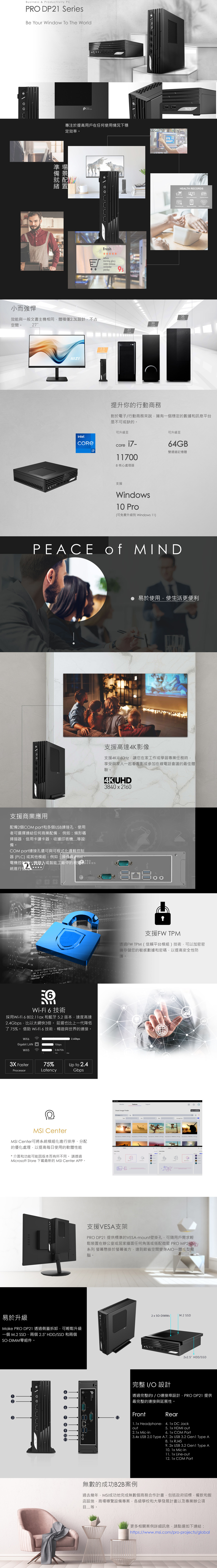 微星 PRO DP21 11MA【200TW】Intel i7-11700/8G/256G SSD/WIN11 PRO
