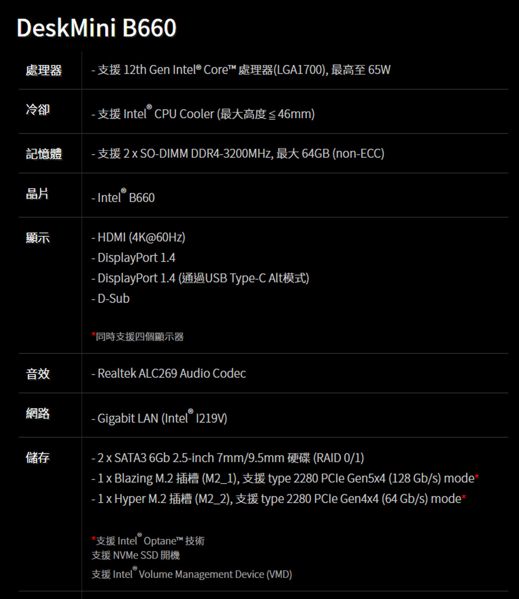 • 華擎 DeskMini INTEL 架構 B660【準系統】