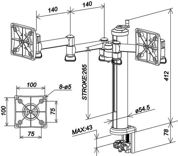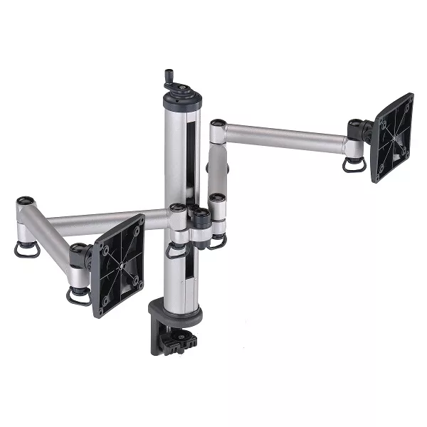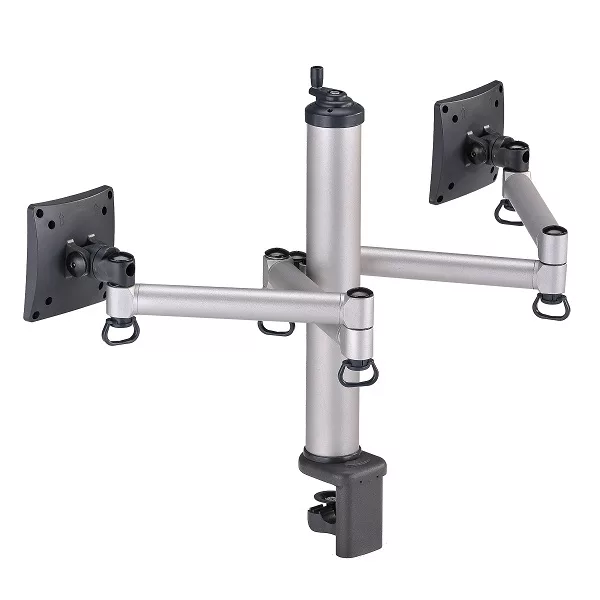 FOGIM夾桌旋轉式雙液晶螢幕支架除放大桌面空間,更可調整螢幕高低、遠近、面板傾斜度至最舒適的觀看位置,完全符合人體工學及眼睛保健概念。螢幕架高後,淨空的桌面變得更為寬敞,不但放大了可使用的桌面空間,支撐臂上的集線導線夾特殊設計助於將雜亂線材妥善整理,讓桌面淨空又整齊。