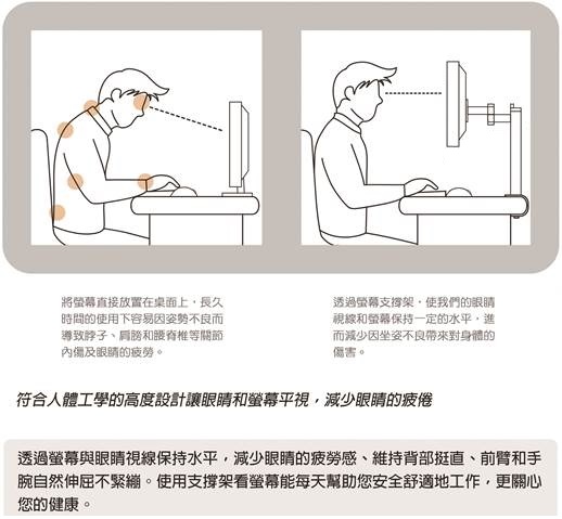● 台灣設計製造,品質保證● 台灣出口歐美日精品● 符合國際VESA安裝標準規格 - 適用於各大品牌● 設計典雅,高質感噴砂處理● 環保用料,無毒環保● 用料高級,鋁合金材質無與倫比 ● 節省空間,不須鑽洞● 具有集線掛勾,使用更便利● 全機終身保固,讓您買得安心● 千萬產品責任險保證 (新安東京海上產物保險產品責任險編號17336字第01ML000082號)● 適用15”~24”液晶螢幕● 總重可掛載最大20公斤液晶螢幕● 支架可360度旋轉● 支撐手臂左右調整最大 180度● 可調整面板傾斜度( 下俯45度 / 上仰60度)● 可調整面板左右各90度● 可調整遠近距離(最遠35公分)● 堅固鋁材+銀色烤漆● 高級用料配件,安裝更牢固