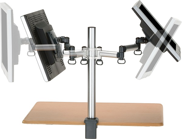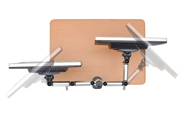 FOGIM夾桌懸臂式雙液晶螢幕支架如同空間魔法師,可放大現有桌面空間,不論在家或辦公室,以本產品電腦桌夾型支撐架將液晶螢幕鎖在固定架上,不須鑽孔免施工不破壞桌面,堅固的材質及設計,可承受各種液晶螢幕的重量。