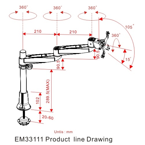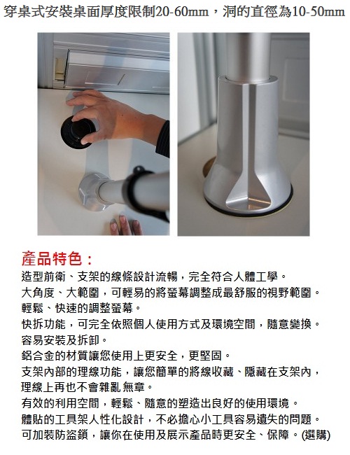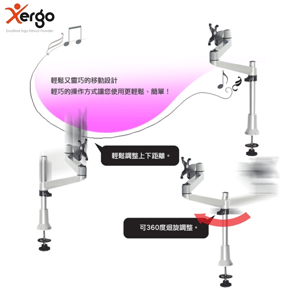 Xergo 穿桌式雙延伸臂螢幕支架-EM33111