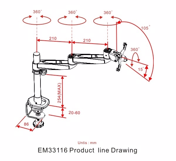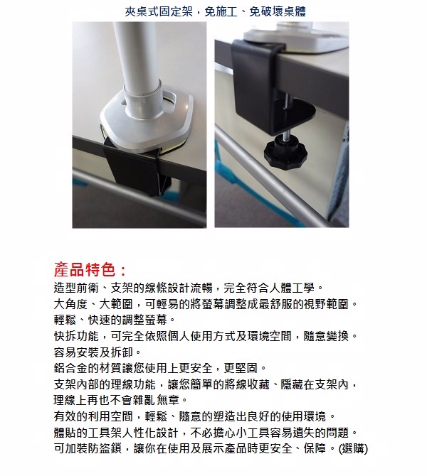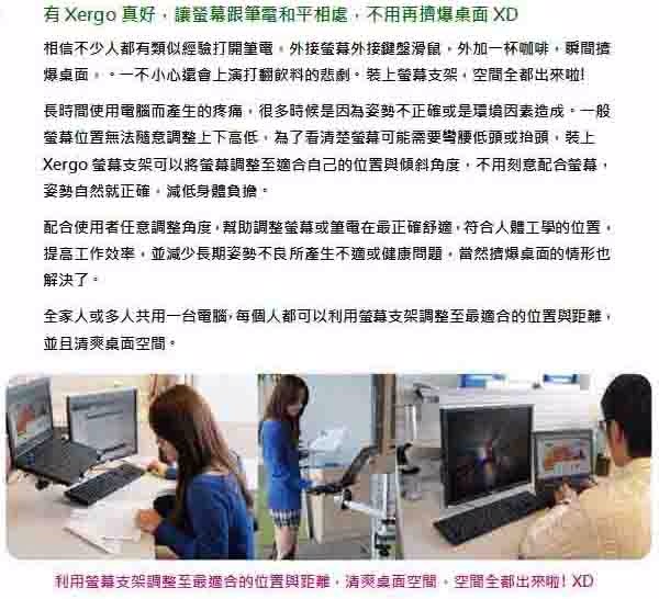 XERGO EM33116(單螢幕)(夾桌式)(雙延伸臂)承載14KG/台製終保