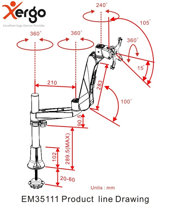 Xergo 穿桌式彈簧延伸臂螢幕支架-EM35111